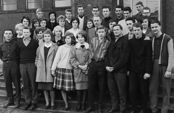 Dieses Foto wurde 1959 aufgenommen und zeigt die Mittelschulklasse des Abschlussjahres 1961. ( Schule: Slomanstieg 1-3 / Klassenlehrer: Herr Wandel )