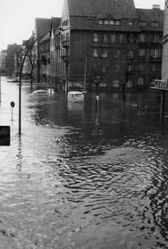 Während meine Eltern mir aus dem Treppenhaus zuriefen, dass ich die Wohnung verlassen sollte, stand ich noch in der "gelbbraunen Brühe", die mir inzwischen bis zum Bauch reichte. Mein Schlafanzug war durchnässt und ich fing vor Kälte an zu zittern. Nun war es "höchste Eisenbahn" die Wohnung zu verlassen, was jedoch nicht so ganz einfach war. Die Auslegware und die Teppiche hatten sich im Wasser angehoben und erschwerten mir dadurch das Gehen. Die Wohnzimmertür klemmte und ich musste das Linoleum mit meinen Händen einreißen, um die Tür weit genug aufzubekommen.